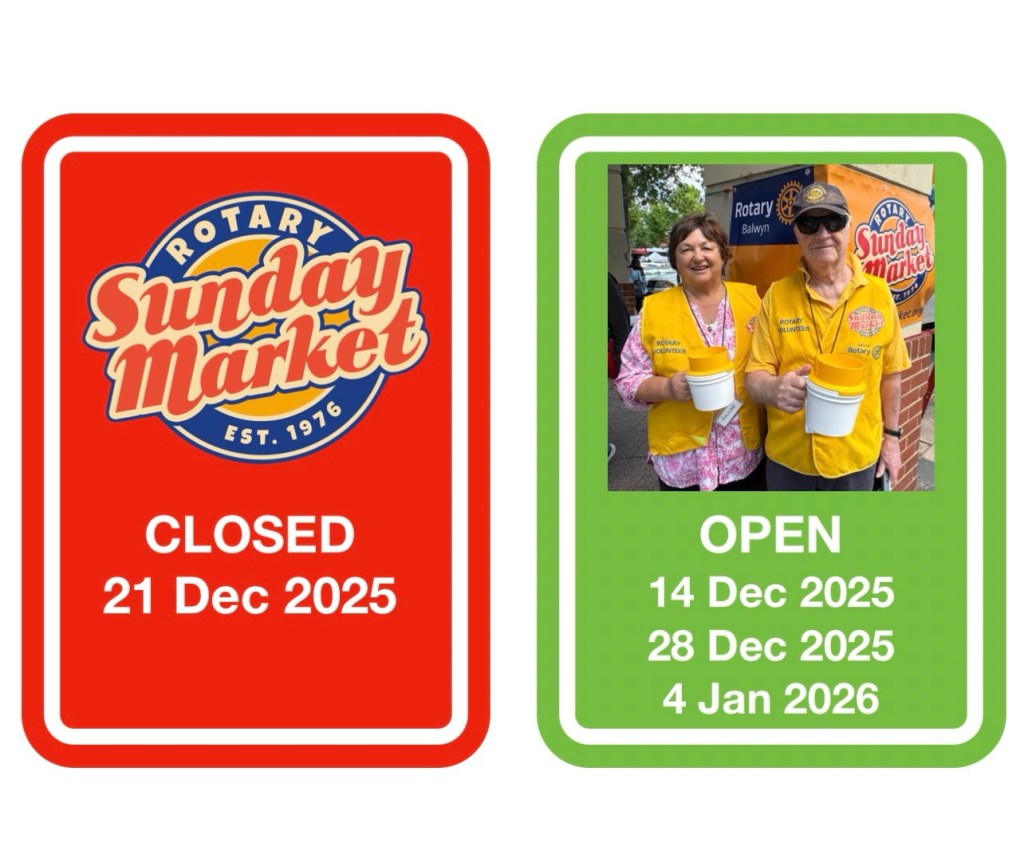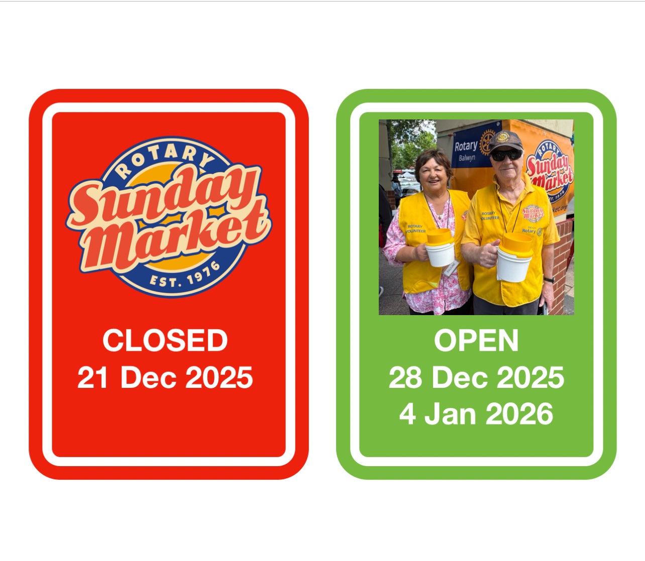 We are very happy to be giving our Rotary volunteers, stall holders and market team a week break. And you will see their happy faces to welcome you back on Sunday 28 Dec 2025!