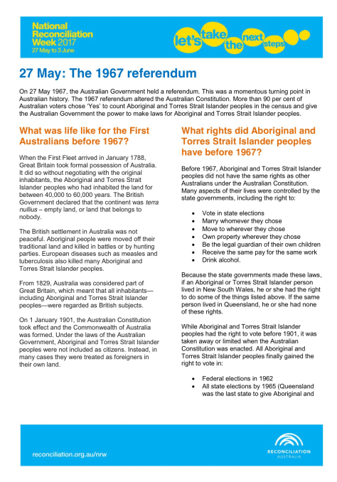 This year is a significant year because it is 50 years since the 1967 Referendum & 25 years since the Mabo decision.