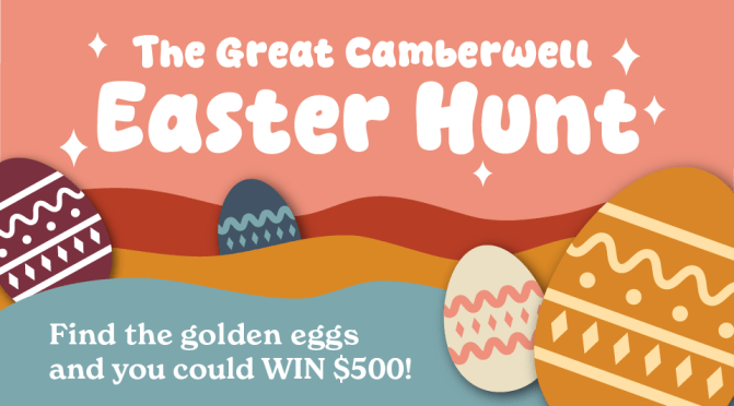 The Great Camberwell Easter Hunt has officially returned to Camberwell Junction — are you ready? Search for golden egg posters in shop windows across Camberwell Junction for your chance to win a $500 gift card!