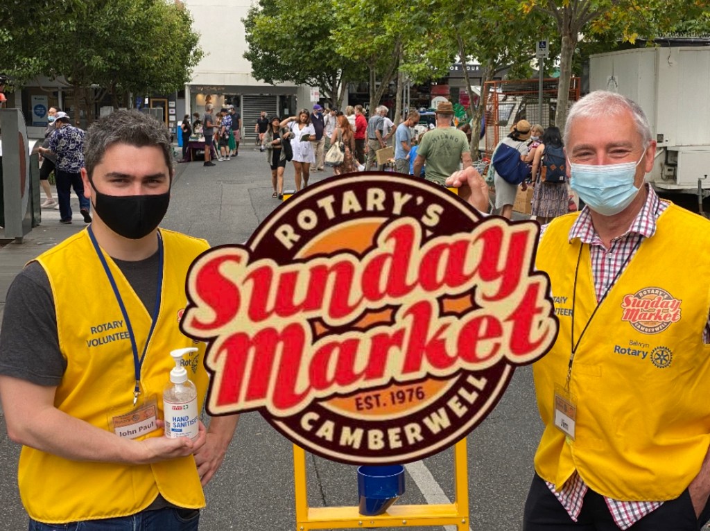 Our Rotary volunteers, stallholders and market staff welcome visitors back; browsing, discovering a treasure, with hot jam donuts, a coffee and the music of buskers filling the air. Remember: