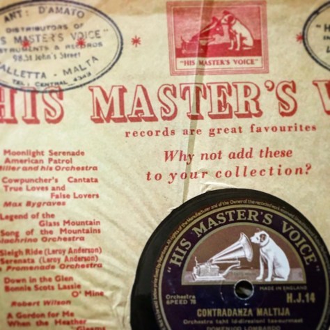 Oh the tales this label could tell! This one record was manufactured in England, sold in Malta & turned up here is Australia. His Master’s Voice was the name of painting that was completed in the late 1800s.